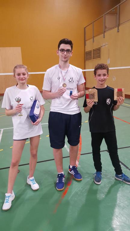 Photo avec la vainqueure Clara, du finaliste Théo et du demi finaliste Axel.