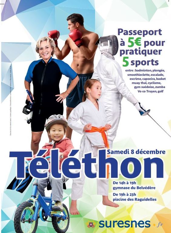Notre participation au Téléthon qui consistait les années précédentes à reverser une partie de nos recettes du tournoi va cette fois-ci consister à animer un atelier badminton au gymnase du Belvédère. D'autres associations sportives de la ville participent à l'événement. Tout le programme de la mairie ici.