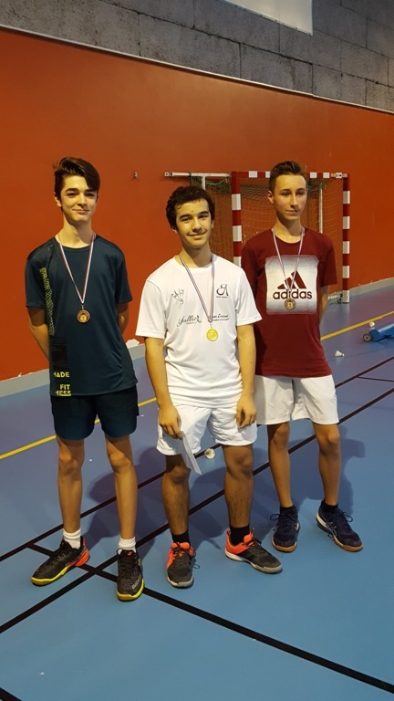 Aurélien JUILLARD (Junior 1, NC), pour sa 1ere compéition il parvient à sortir de poule avec une victoire par WO et une victoire 21-18, 15-21, 21-15 mais en 1/4 son 1er set est très difficile mais se rattrape mieux sur son second set perdu 21-16. Bonne expérience à prendre pour les prochaines compétitions.