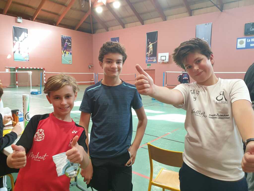 SH Benjamin B: Sacha POMMERUEIL ROBIN (P10, Benj 1) parvient jusqu'en quart où il est défait 14-21, 21-19, 23-21 ! Gabriel DAUBIE (P10, Benj 2) parvient également en quart de finale ! Charlie ASSANDRI MARTIN (D9, Pou 2) surclassé remporte un match contre un suresnois mais perd les 2 suivants avec une bonne combativité contre les 2 futures finalistes ! Lucas SEGURA (P11, Benj 2) dans la même poule que Charlie avec 3 défaites sans démérité ! Antoine DE SAINT REMY (P11, Benj 1) ne parvient pas non plus à sortir de poule !