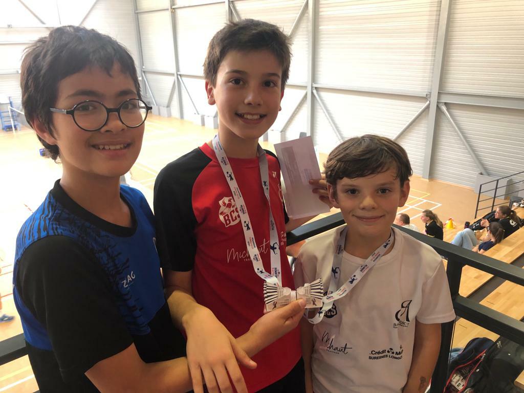 Edgar BOUNGNASENG (Minibad), dans la poule la plus relevée, avec 3 ans de moins, il montre un excellent visage avec une première défaite face à Charlie 21-13, 21-12, puis face à la tds 1 perd 21-06, 21-14. Dernier match un peu en-deçà des 2 premiers, mais gardant sa combativité, il perd 21-15, 21-15 ! Dans l'ensemble, une excellente progression, tenant les échanges face aux meilleurs avec de beaux coups gagnants et de belles fixations !