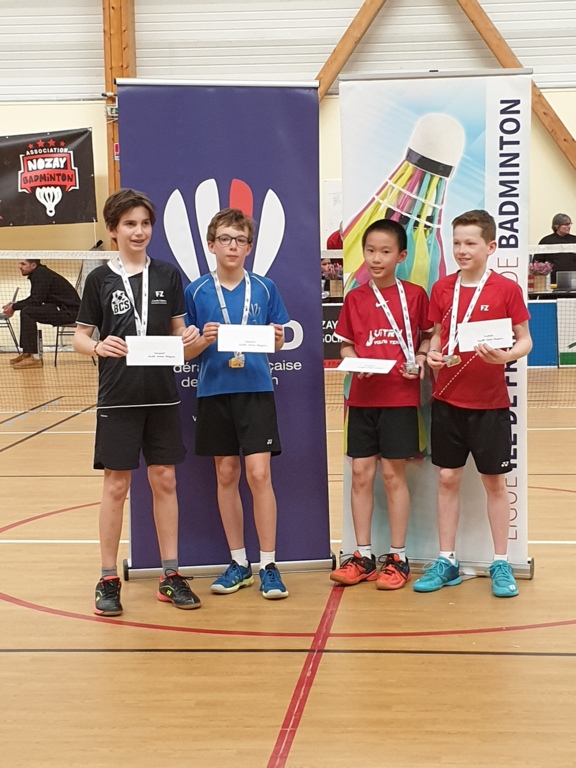 Arthus COMPÈRE (R6, Benj 2), il se hisse jusqu'au quart où il affronte le 6e français après un 1er set et demi époustouflant il diminu petit à petit et perd 13-21, 21-12, 21-9 ! Comme Thibault sa place est assuré en simple au point !