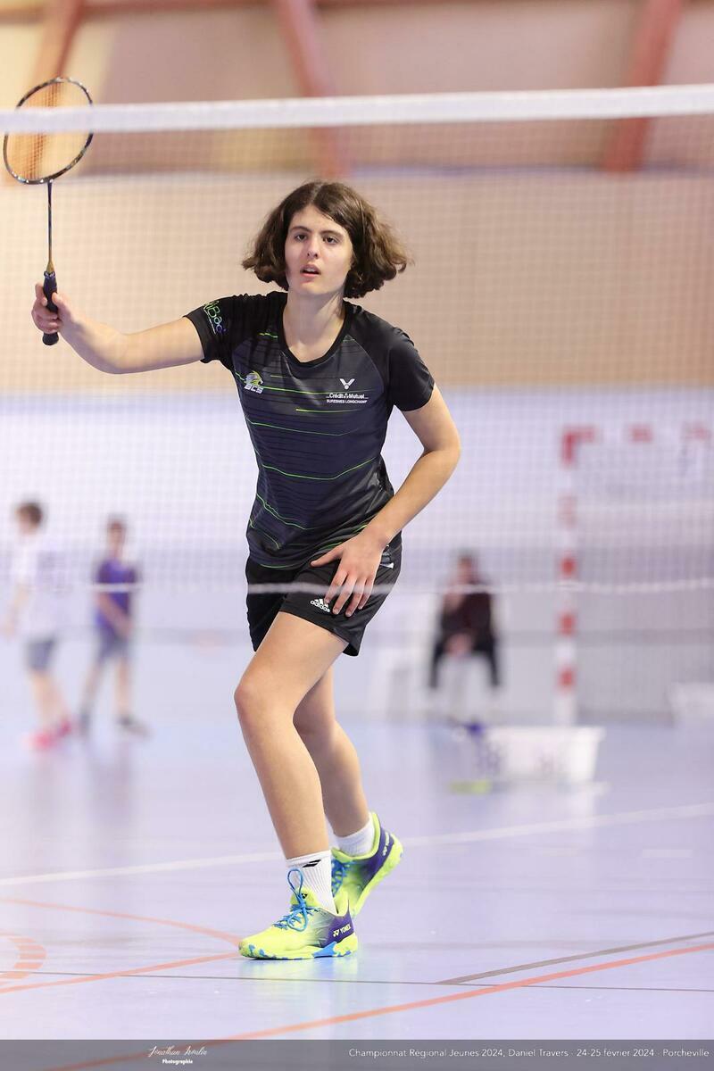 Maëlie BOCHMAN (D7, Benj 2), en 1/8e de finale, elle affronte une bonne D7 et c'est un match bien maîtrisé 21-13, 21-16 ! En quart de finale, encore une solide D7 et après un 1er set bien maîtrisé le 2e était un peu plus difficile avec une adversaire élevant son niveau de jeu, mais Maëlie reste très solide sur la fin pour s'octroyer une place en demi 21-13, 21-19 ! En demi, elle affronte la 8e française (R6) et 1er set en deçà puis un regain mais insuffisant pour s'imposer 21-7, 21-14 ! En petite finale, fatiguée mais combative elle est défaite en 2 sets face à la 13e française, belle 4e place de Maëlie qui devrait prendre une place au Qualification au France Jeune !