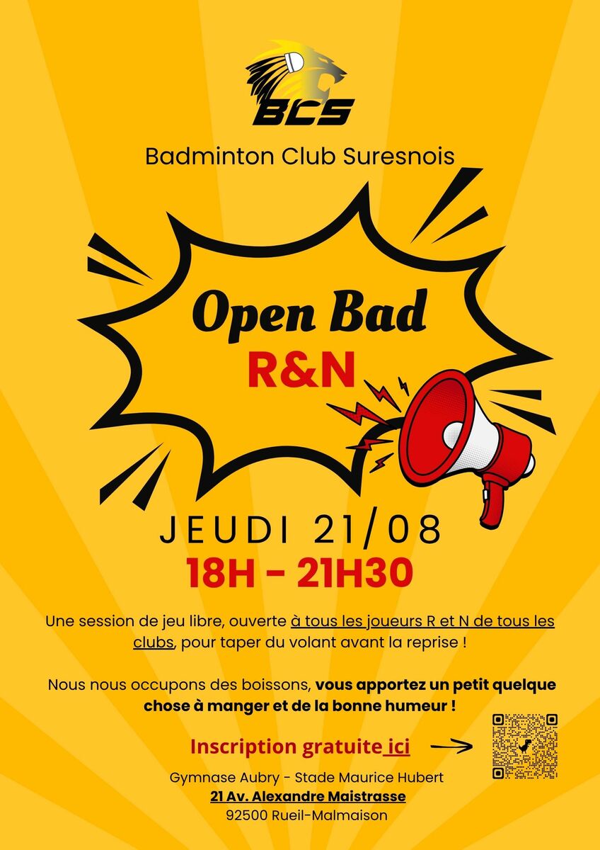 Jeu libre ouvert à tous les licenciés 24-25 compétiteurs classés R ou N dans au moins 1 tableau, adhérents ou non du BCS
