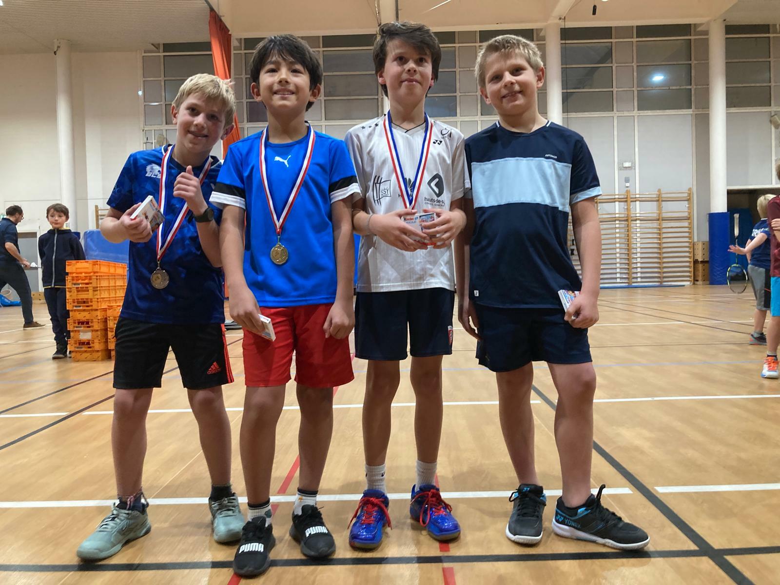 Simple Homme Minibad: Matteo HUANG pour sa 1ère année et 1ère compétition il a montré une progression au fil de ses matchs et remporte un match, perd un match d'un rien 21-17 au 3e set et une défaite, c'est de bonne augure pour la suite !