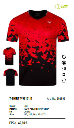 Le maillot Victor rouge est le maillot secondaire du BCS pour les saisons 2025-2026 et 2026-2027. Version Unisex (coupe droite, hommes et enfants).