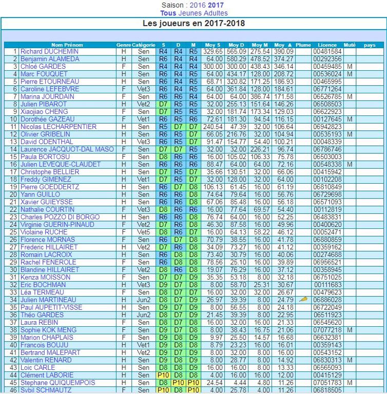 La rentrée sportive 2018-2019 verra plusieurs modifications apportées à l’algorithme de classement des joueurs, le Classement Par Points Hebdomadaire (CPPH). Les grands principes de l’algorithme seront encore maintenus pendant au moins deux ans, mais un certain nombre de correctifs va être apporté pour redonner plus de sens aux séries et obtenir une meilleure adéquation entre les classements et le niveau réel.