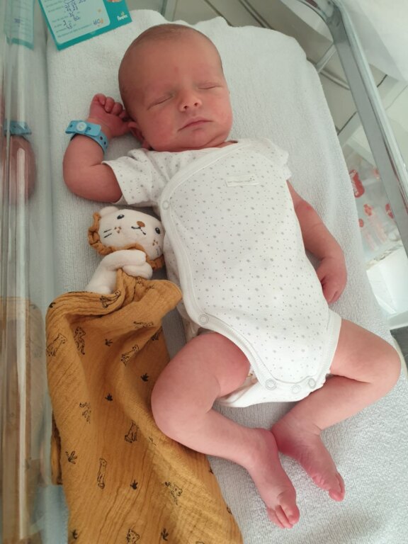 Du haut de ses 48 cm et avec ses 3,08 kg, il apporte déjà des tonnes de bonheur à Henrique et Charlotte.